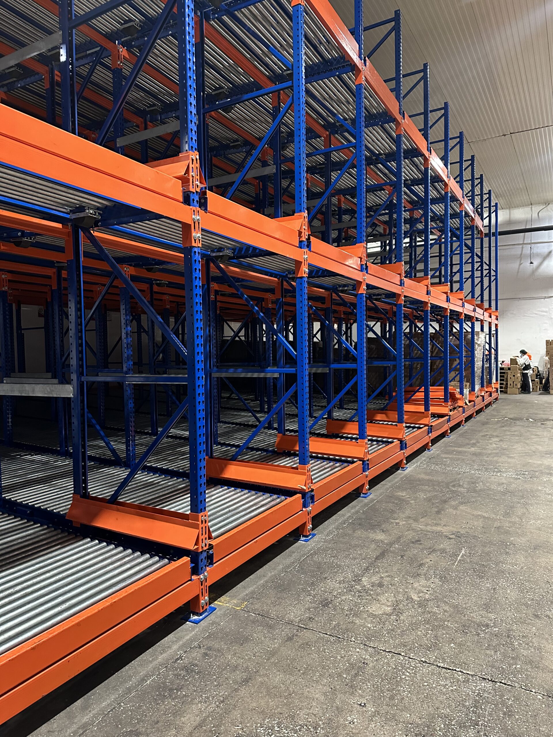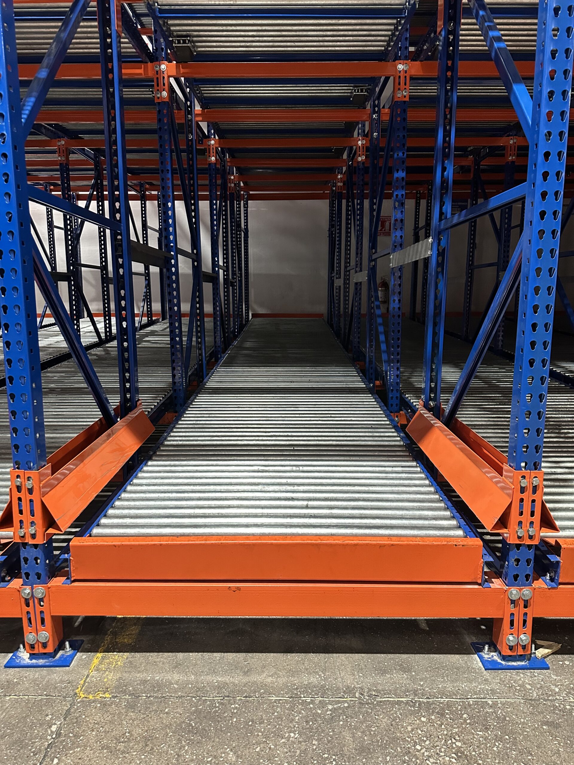 Pallet flow systems are high-density, gravity-driven storage solutions that maximize efficiency in warehouses and distribution centers. Ideal for cold storage, distribution centers, and high-turnover inventory, pallet flow systems provide efficient, organized, and cost-effective warehouse storage. Here’s why they’re beneficial: