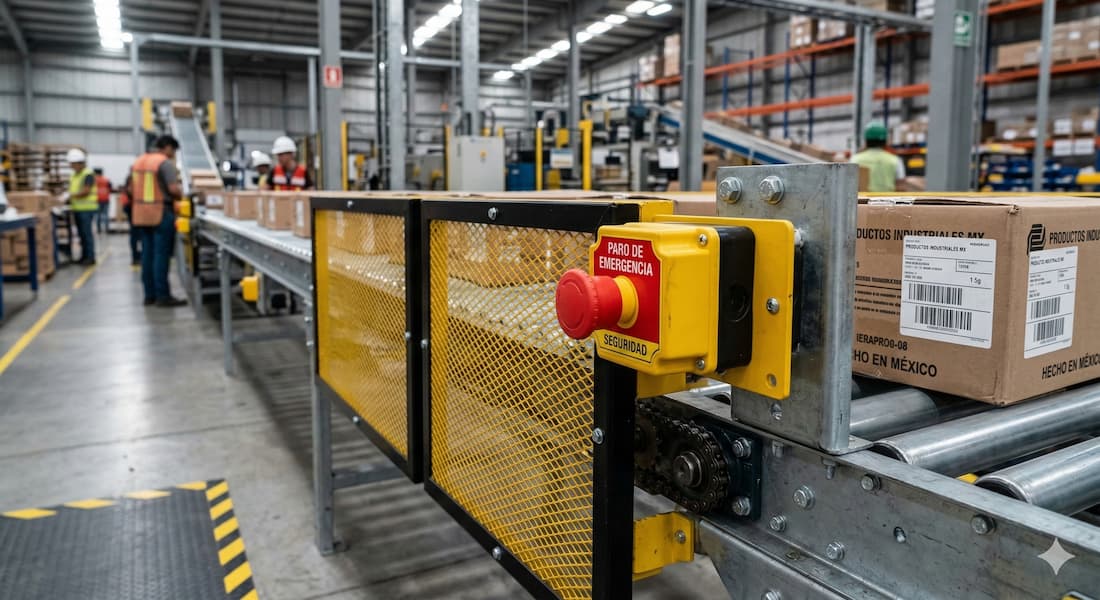 Este punto rara vez se aborda en guías sobre conveyors, pero resulta obligatorio para cualquier empresa que opere en México. Estos transportadores son maquinaria industrial regulada. La Secretaría del Trabajo y Previsión Social establece varias Normas Oficiales Mexicanas que impactan directamente la instalación, operación y mantenimiento de sistemas transportadores. NOM-004-STPS-1999. Sistemas de protección y dispositivos de seguridad en maquinaria y equipo. Obliga a que toda maquinaria cuente con guardas de protección, paro de emergencia, señalización y procedimientos de bloqueo de energía (LOTO). Un conveyor sin guardas perimetrales o sin botones de paro accesibles a lo largo de su recorrido puede derivar en multas de 50 hasta 5,000 veces la UMA. Para entender el alcance completo de los requerimientos de seguridad industrial en almacenes, vale la pena revisar qué otras obligaciones aplican al espacio donde se instalan estos sistemas. NOM-006-STPS-2014. Manejo y almacenamiento de materiales. Establece condiciones de seguridad para carga, descarga, manejo y almacenamiento mediante maquinaria. Aplica directamente cuando el conveyor forma parte del movimiento de mercancías en almacenes y centros de distribución. NOM-001-STPS-2008. Edificios, locales, instalaciones y áreas en centros de trabajo. Define condiciones de seguridad en pisos, pasillos, escaleras y rampas donde se instalen sistemas de transporte. Los pasillos adyacentes a conveyors deben mantener un ancho mínimo libre de obstáculos con señalización correspondiente.Conveyors inteligentes: integración con Industria 4.0