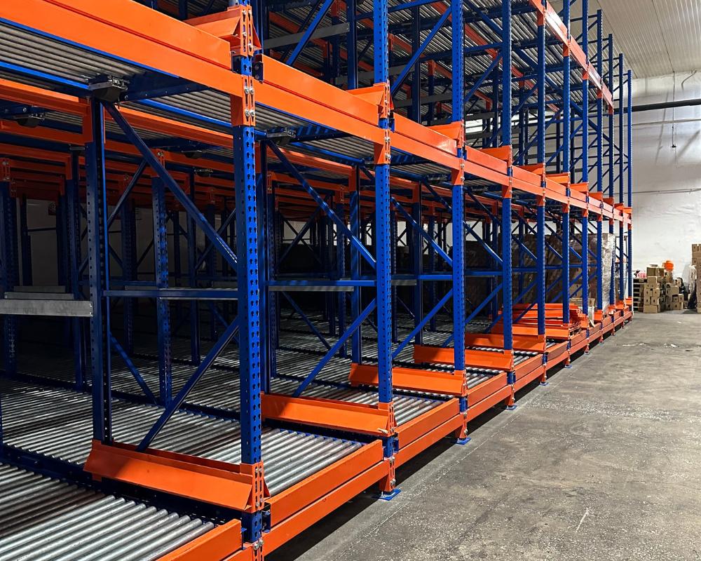 El pallet flow rack es un estante dinámico que representa una evolución en los racks de almacenamiento tradicionales, donde las tarimas se desplazan por gravedad a través de rieles inclinados con rodamientos especializados.